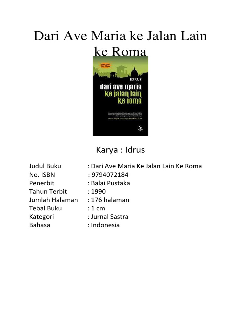 DOC) Dari Ave Maria ke Jalan Lain ke Roma Karya : Idrus | Anggitha Yohana - Academia.edu