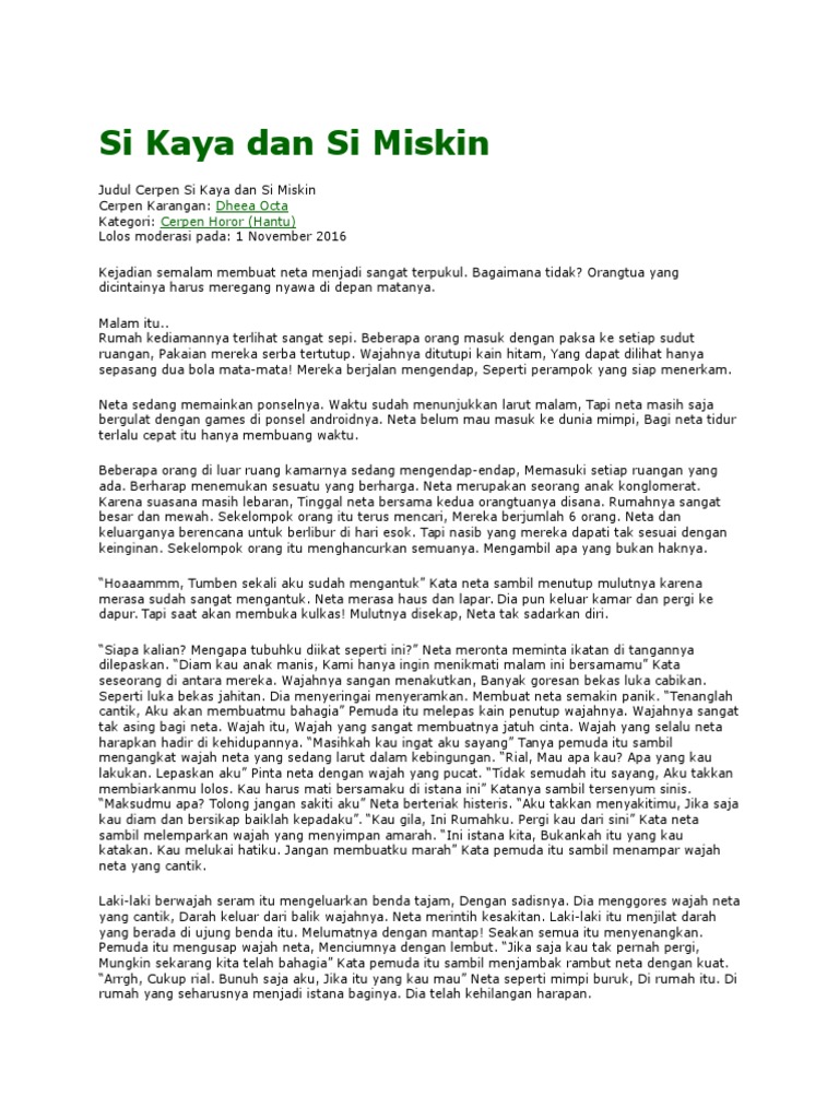 bikin cerpen tentang orang miskin dan kaya - Brainly.co.id