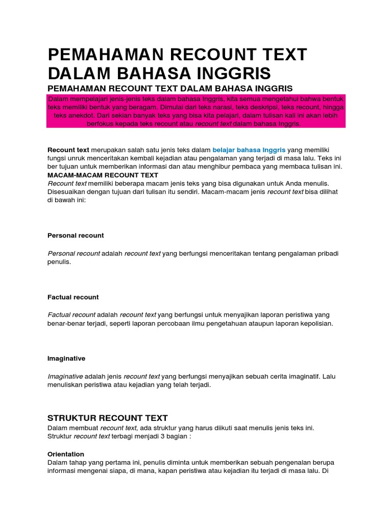 Pemahaman Recount Text Dalam Bahasa Inggris
