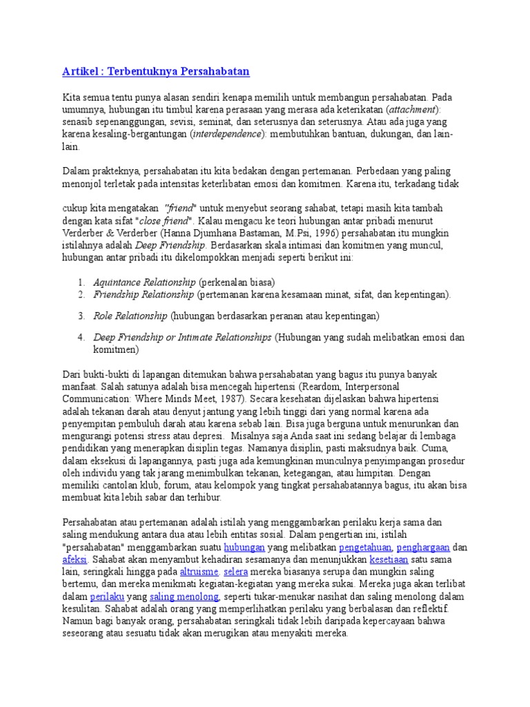 Richa Savitri: INDAH DAN RUSAKNYA PERSAHABATAN
