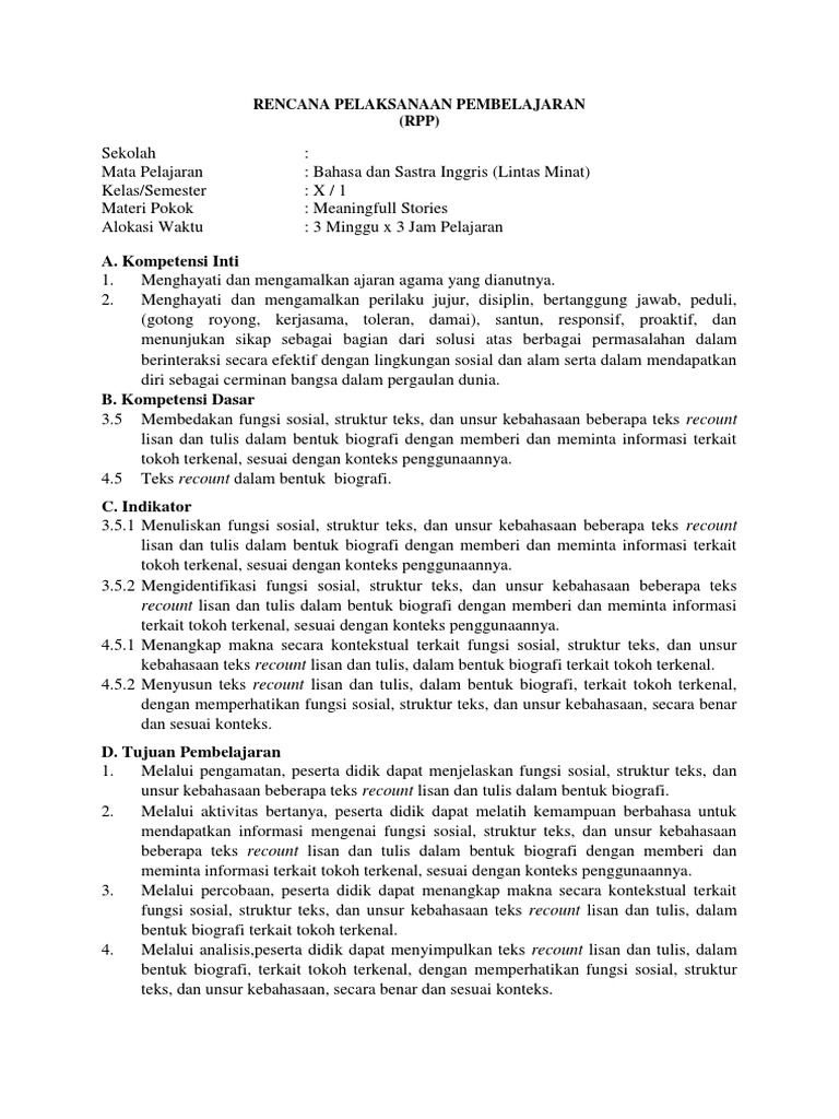RPP Bahasa dan sastra inggris kelas X