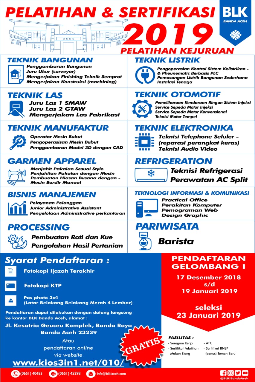 Gratis! Berikut Tata Cara Pendaftaran Pelatihan Skill Kerja di BLK Banda Aceh - Blog of Ayu ‘Ulya
