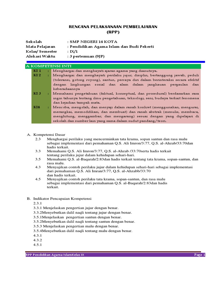 Materi Jujur, Tata Krama, Sopan Santun, Rasa Malu