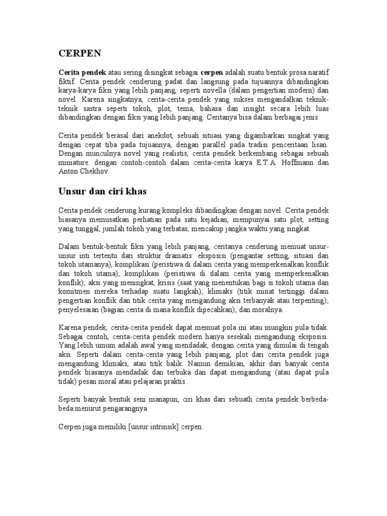 Cerita Pendek Atau Sering Disingkat Sebagai Cerpen Adalah Suatu Bentuk Prosa Naratif Fiktif