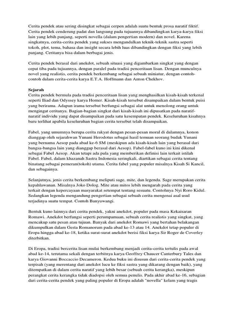 Cerita Pendek Atau Sering Disingkat Sebagai Cerpen Adalah Suatu Bentuk Prosa Naratif Fiktif