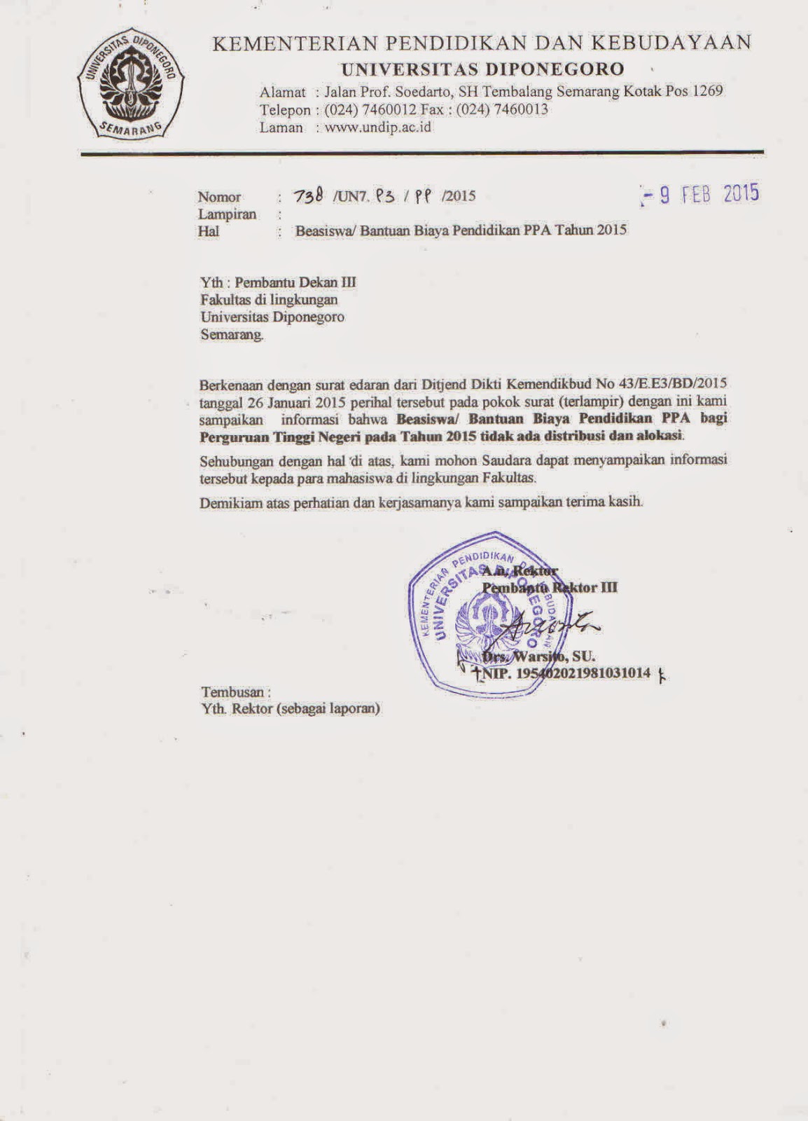 Surat Edaran Kuliah Online FISIP UNDIP – Fisip Undip