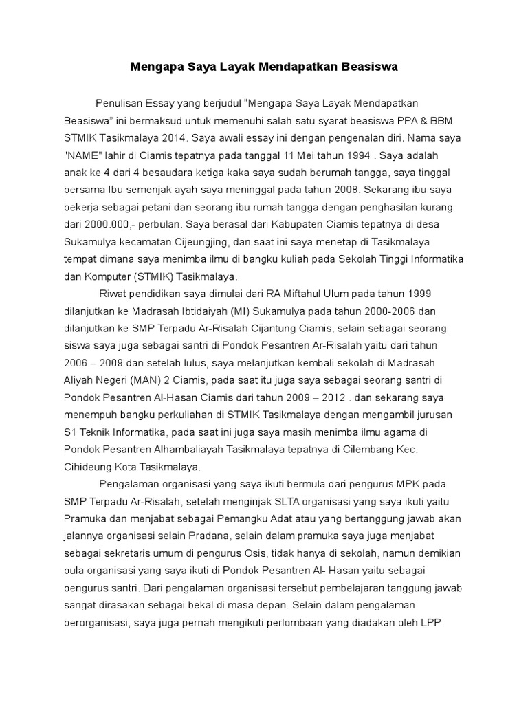DOC) Contoh Essay Beasiswa | Ricky Saputra - Academia.edu