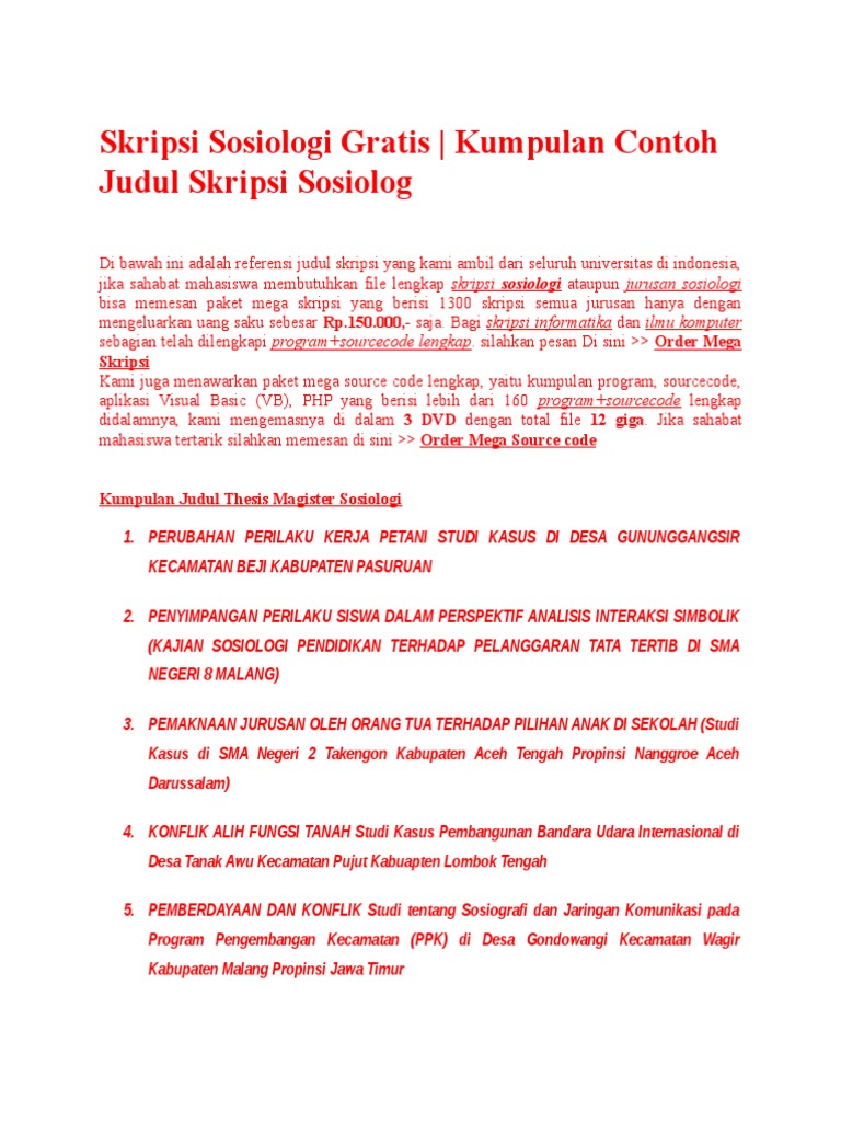Contoh Judul Skripsi Sosiologi - Obtenez Livre