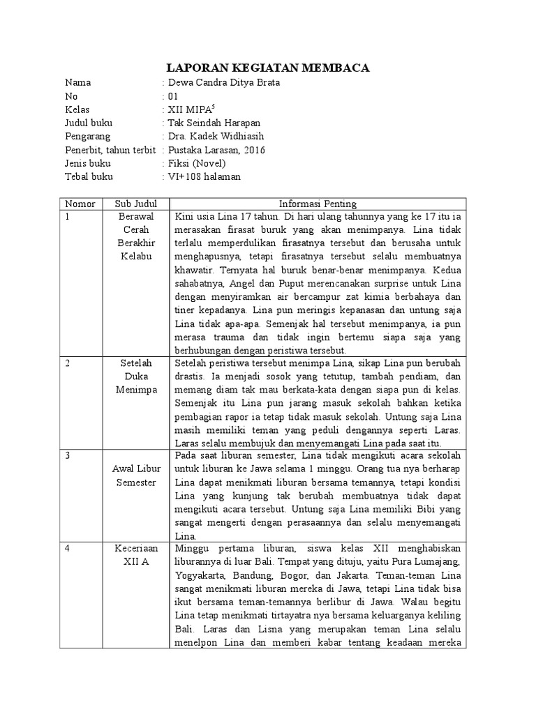 Contoh Laporan Kegiatan Membaca Buku Non Fiksi – Berbagai Contoh