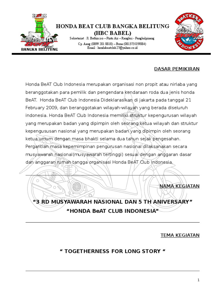Contoh Proposal Anniversary Club Motor Honda - Berbagi Contoh Proposal