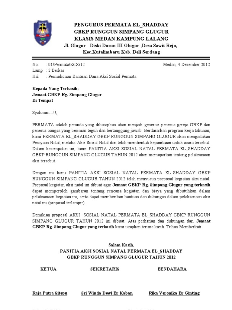 Contoh Proposal Permohonan Dana Kegiatan Sosial Pdf - Temukan Contoh