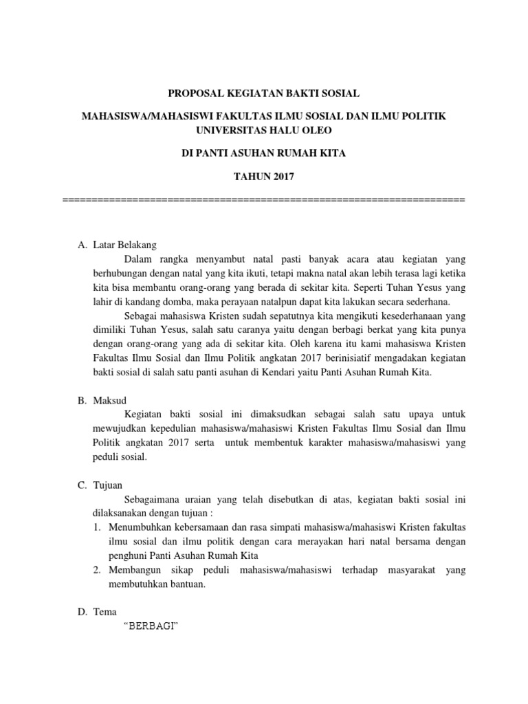 DOC) CONTOH PROPOSAL BAKTI SOSIAL | Abu Mashir - Academia.edu
