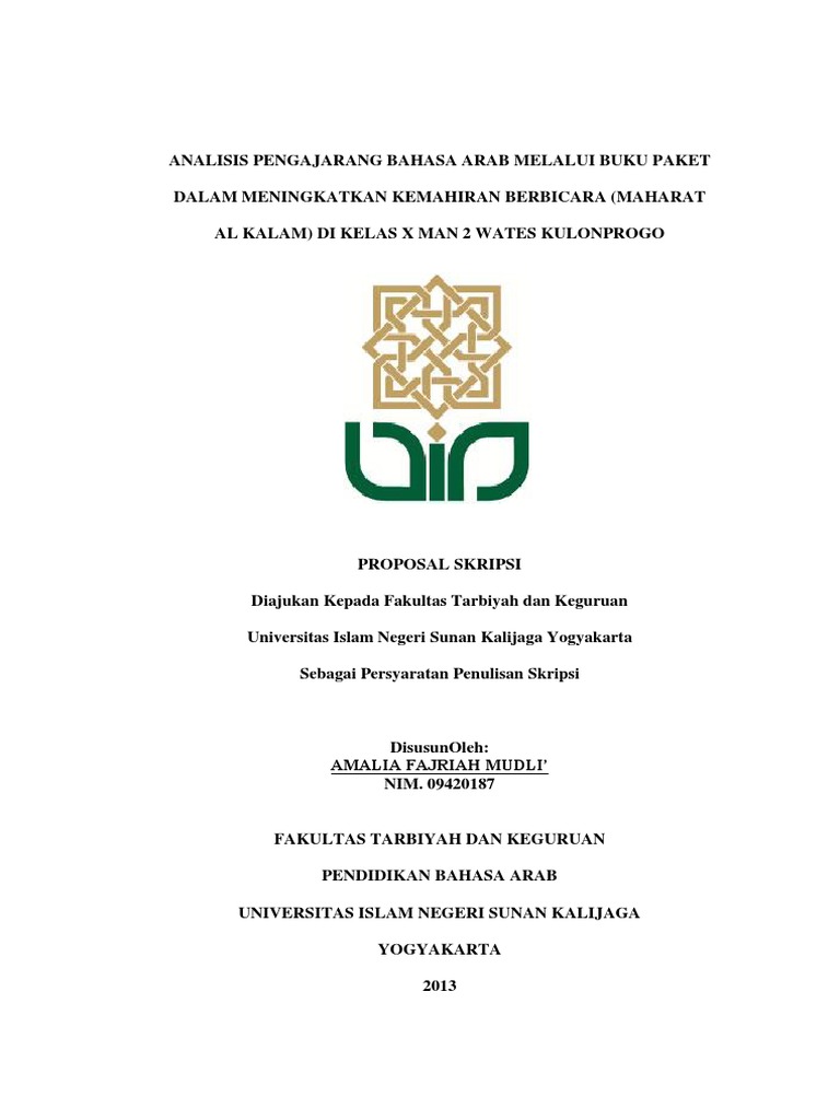 PROPOSAL SKRIPSI ANALISIS PENGAJARANG BAHASA ARAB MELALUI BUKU PAKET DALAM MENINGKATKAN KEMAHIRAN BERBICARA (MAHARAT AL KALAM) DI KELAS X MAN 2 WATES KULONPROGO