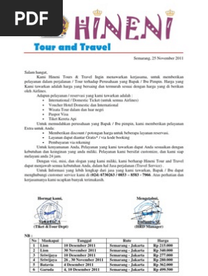 Surat Penawaran Kerjasama Hineni Tour and Travel