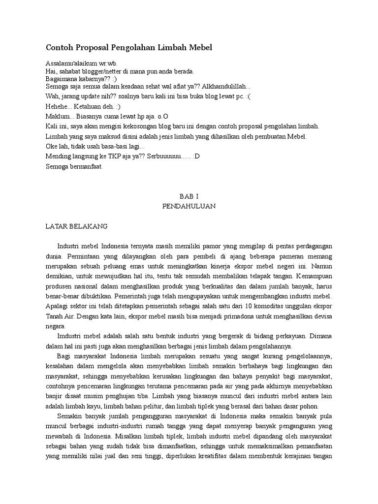 Contoh Proposal Pengolahan Limbah Mebel