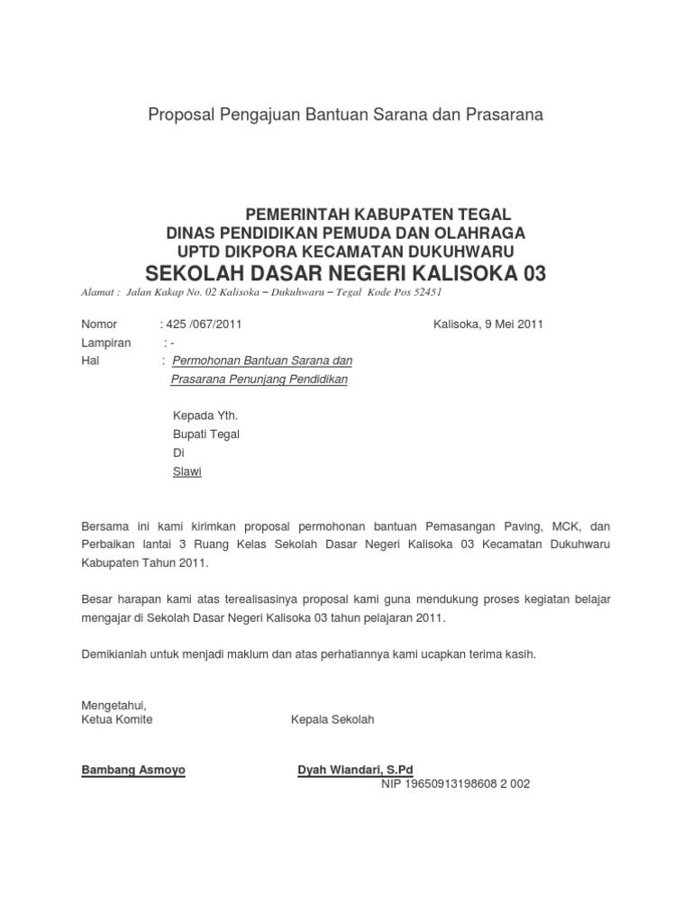 DOC) PROPOSAL PERMOHONAN BANTUAN DANA SARANA DAN PRASARANA SMPN 4 LUBAI ULU | Iwan Kriswandi - Academia.edu