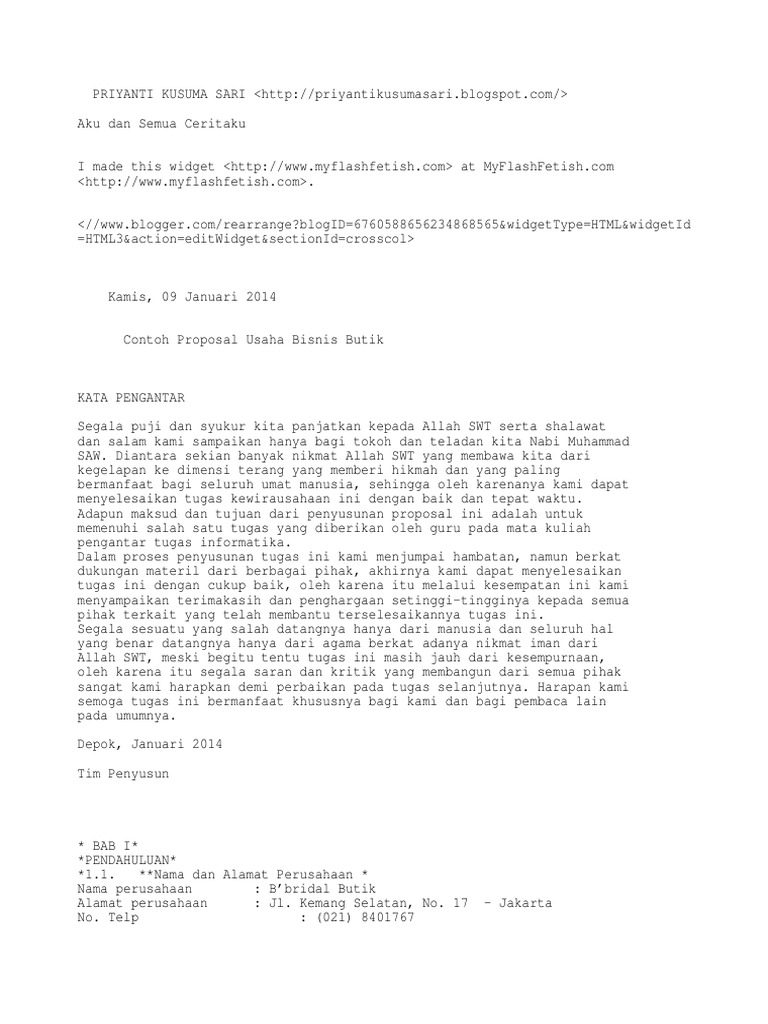 DOC) CONTOH PROPOSAL USAHA BUTIK | Slamet Riyadi - Academia.edu