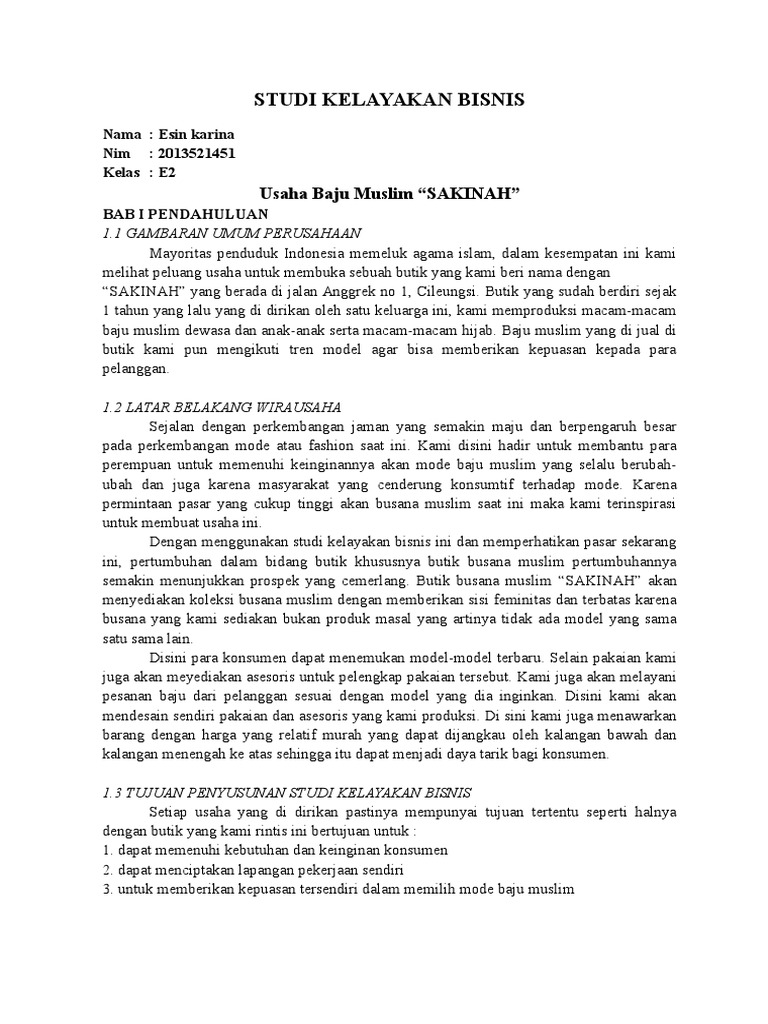 DOC) Contoh proposal perencanaan usaha hijabers | muba ahmad - Academia.edu