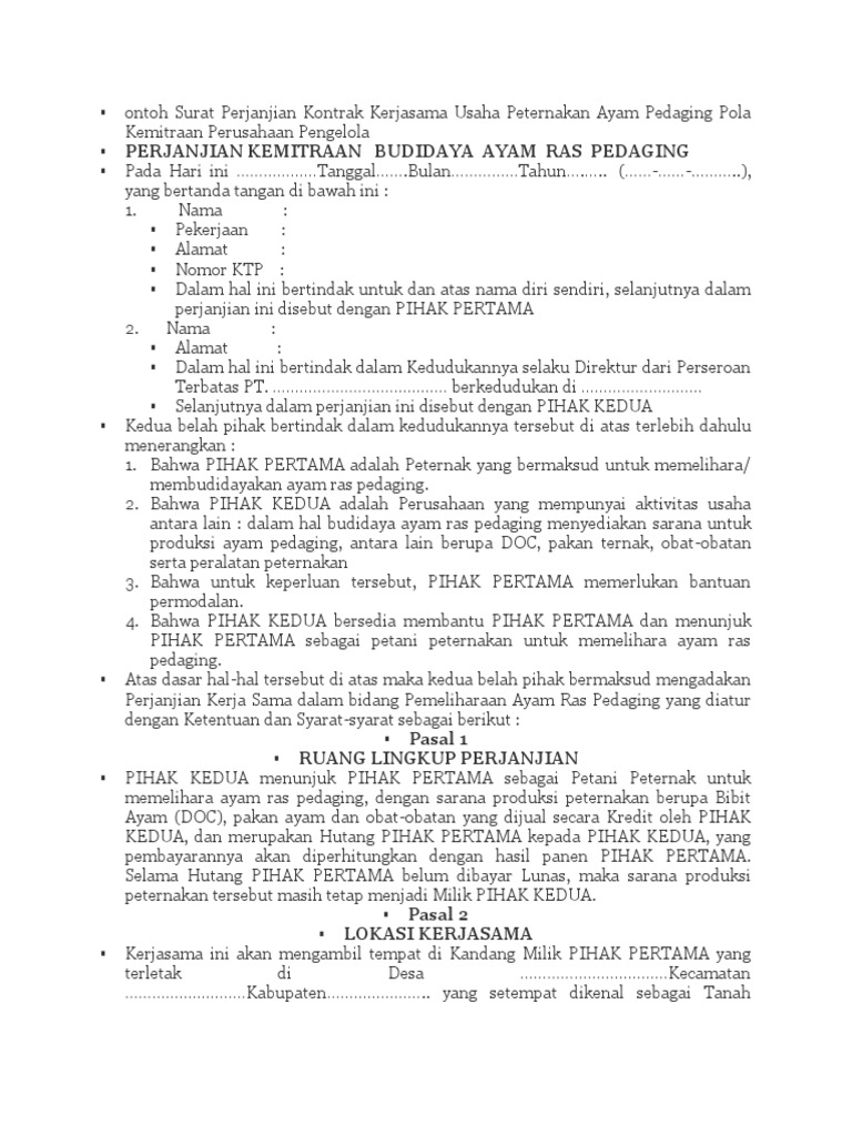 Contoh Surat Perjanjian Kerjasama Usaha Peternakan Ayam