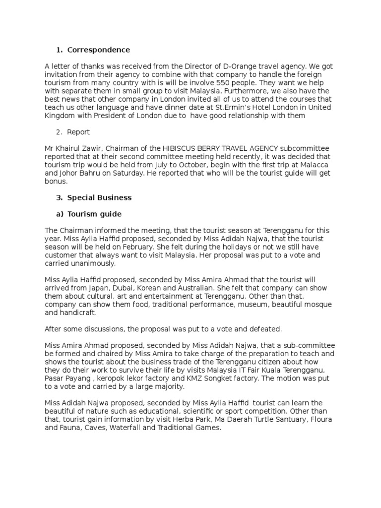 Mock Meeting | Tourism