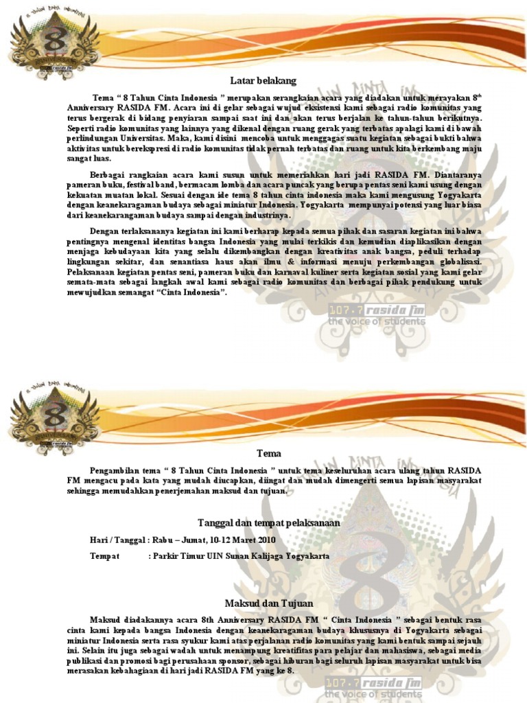 contoh proposal: CONTOH PROPOSAL ULANG TAHUN KOTA
