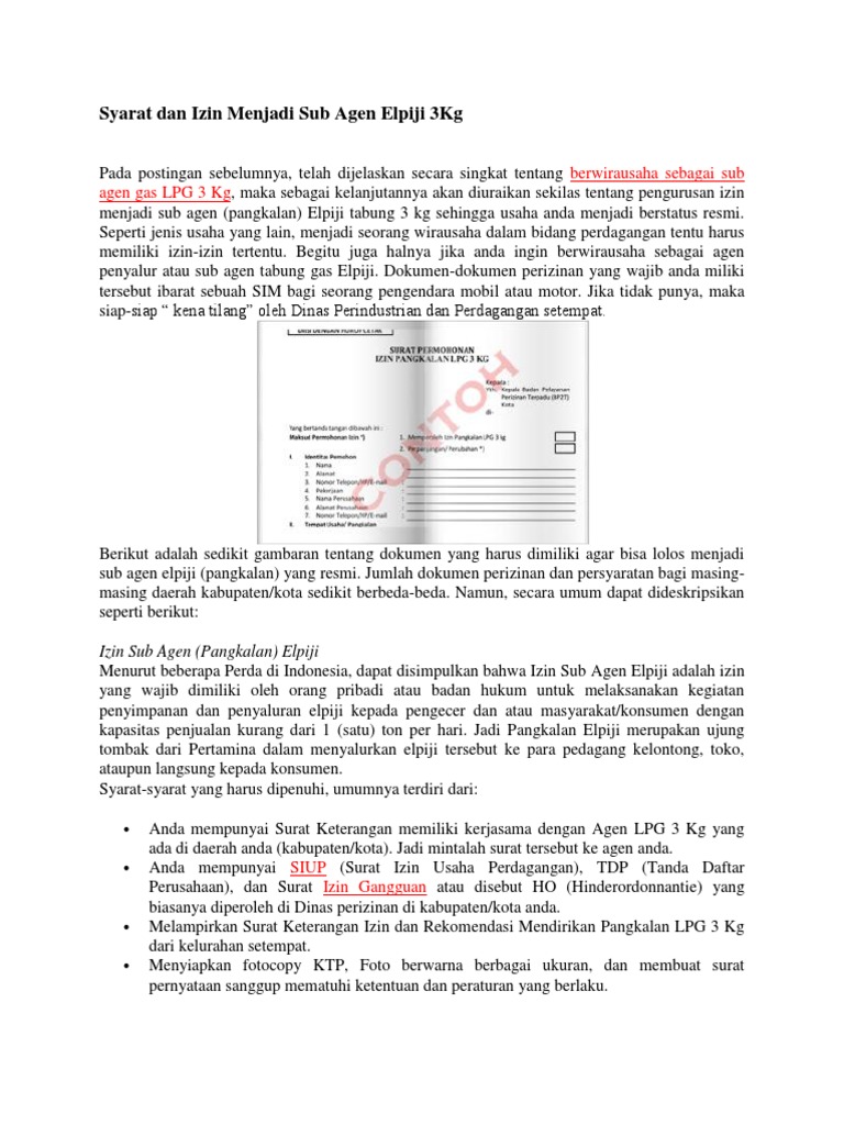 Surat Permohonan Izin Pangkalan Lpg 3 Kg - Contoh Seputar Surat