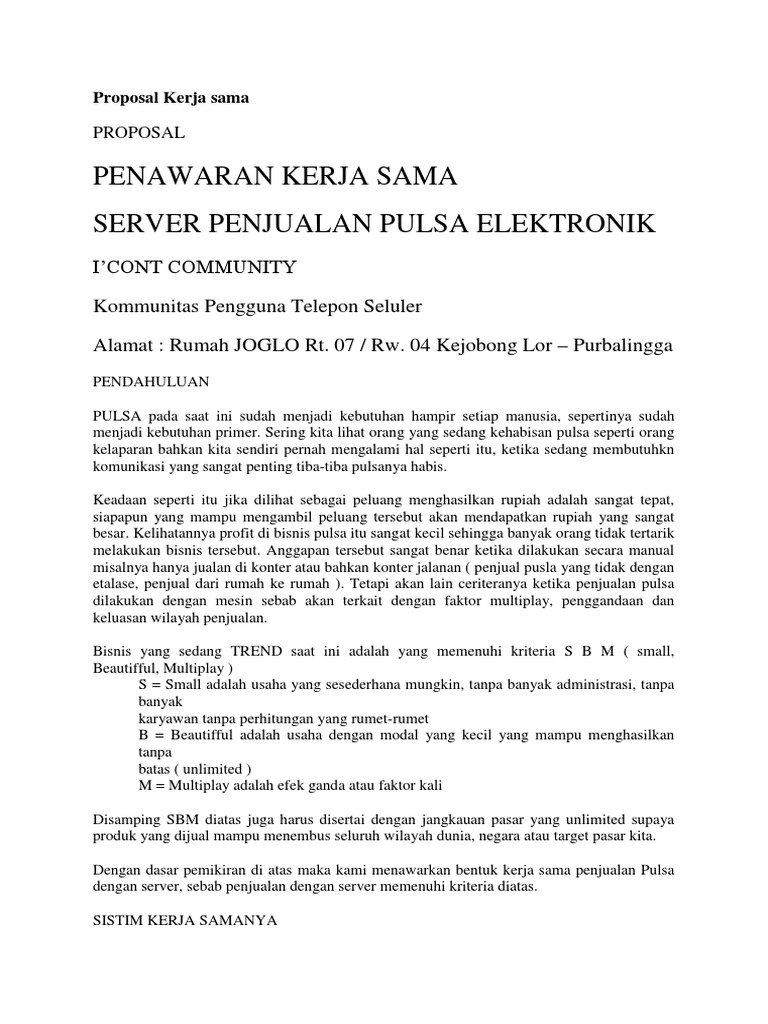 Proposal Kerja Sama Server Pulsa