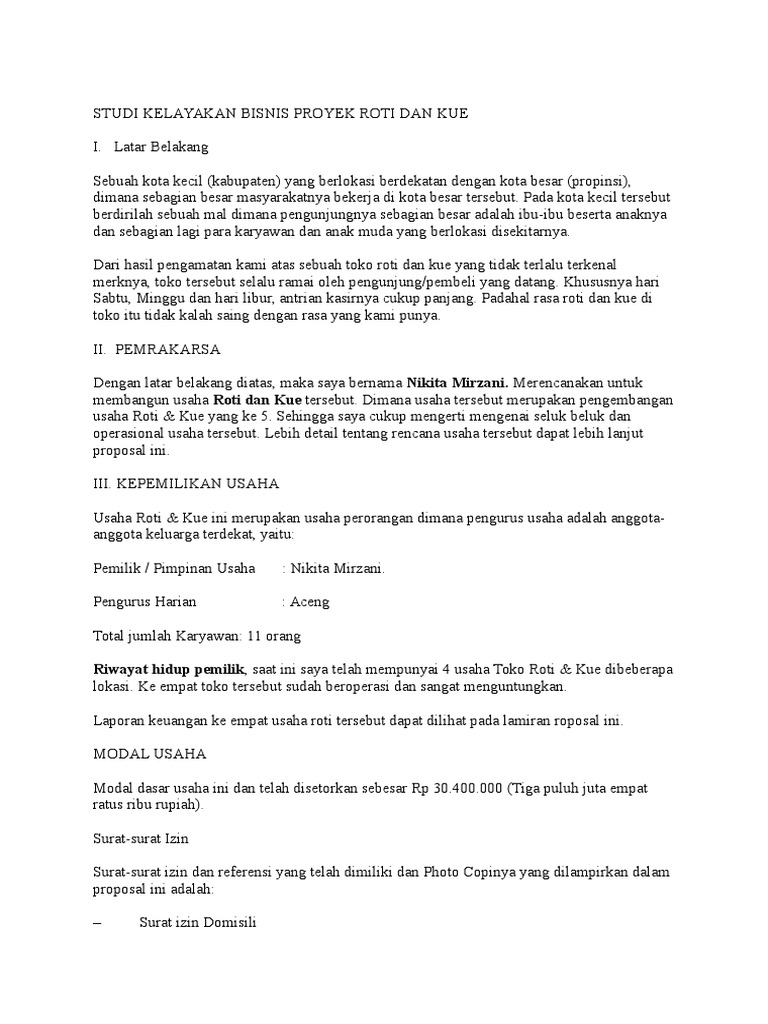 Contoh Proposal Usaha Roti Dan Kue - Berbagai Kue