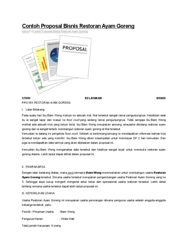Contoh proposal usaha ayam goreng - 1 Contoh PROPOSAL PERMOHONAN KREDIT USAHA Usaha Restoran Ayam Goreng di.STUDI KELAYAKAN BISNIS 2008 2 Bagian dari | Course Hero
