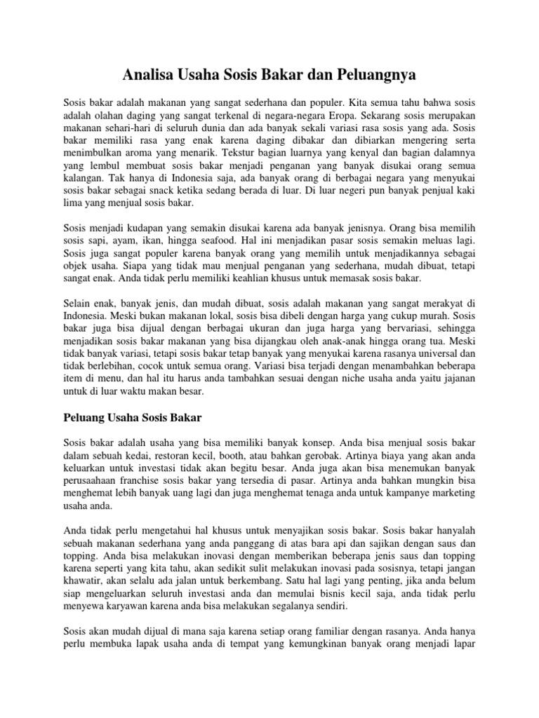 Koleksi Proposal Bisnis Plan Sosis Bakar | Kumpulan Contoh Laporan Bacaan