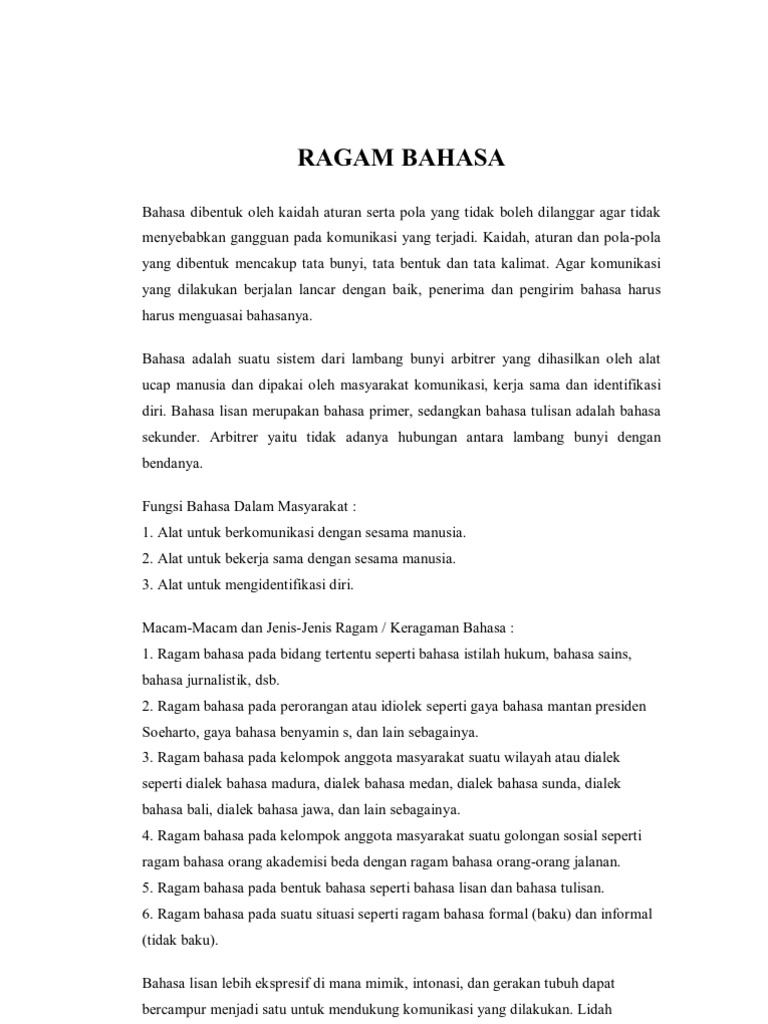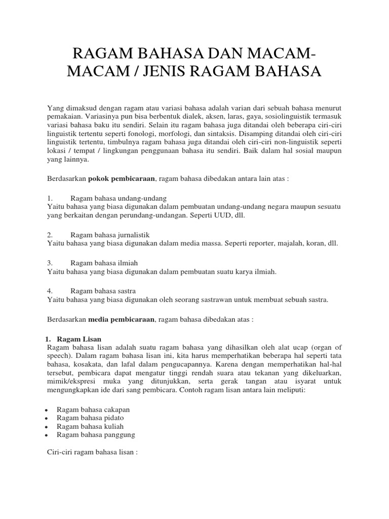 DOC) Ragam Bahasa Beserta Contohnya | Gilbert Pattipeilohy - Academia.edu