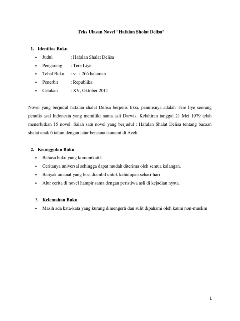 DOC) Resensi Novel Hafalan Shalat Delisa | dila prastya - Academia.edu