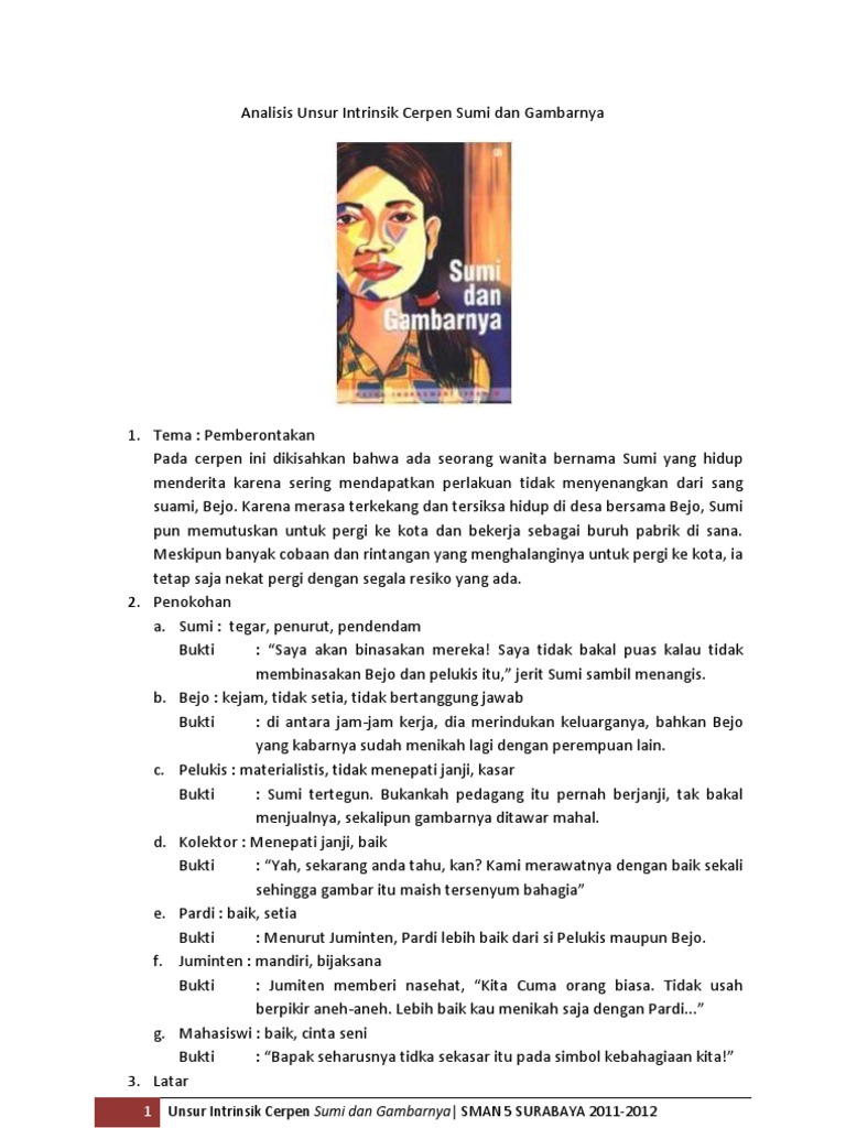 Unsur Intrinsik Cerpen Sumi Dan Gambarnya