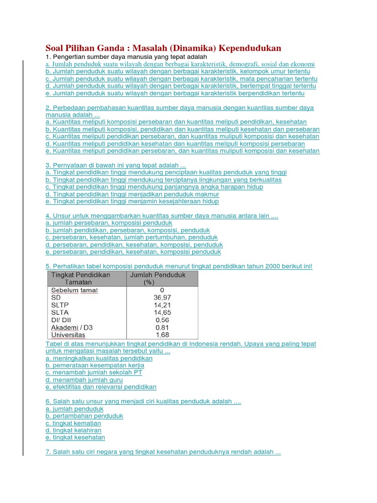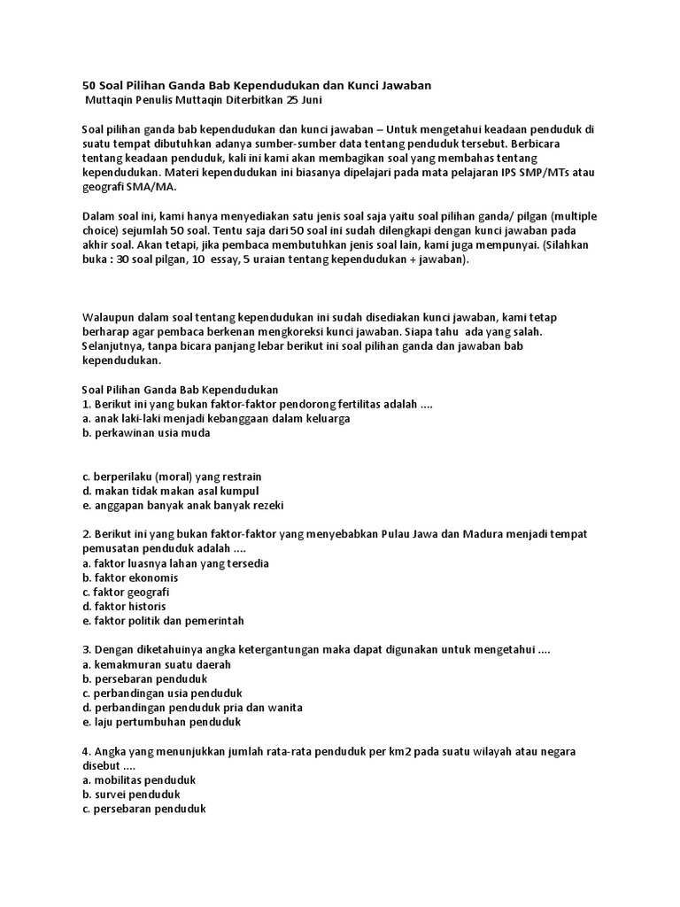 50 Soal Pilihan Ganda Bab Kependudukan dan Kunci Jawaban - Muttaqin id
