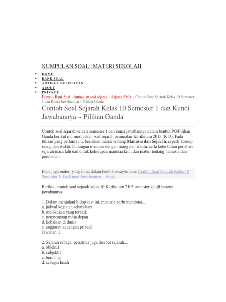 Contoh Soal Pilihan Ganda Dan Jawabannya - Dunia Sosial