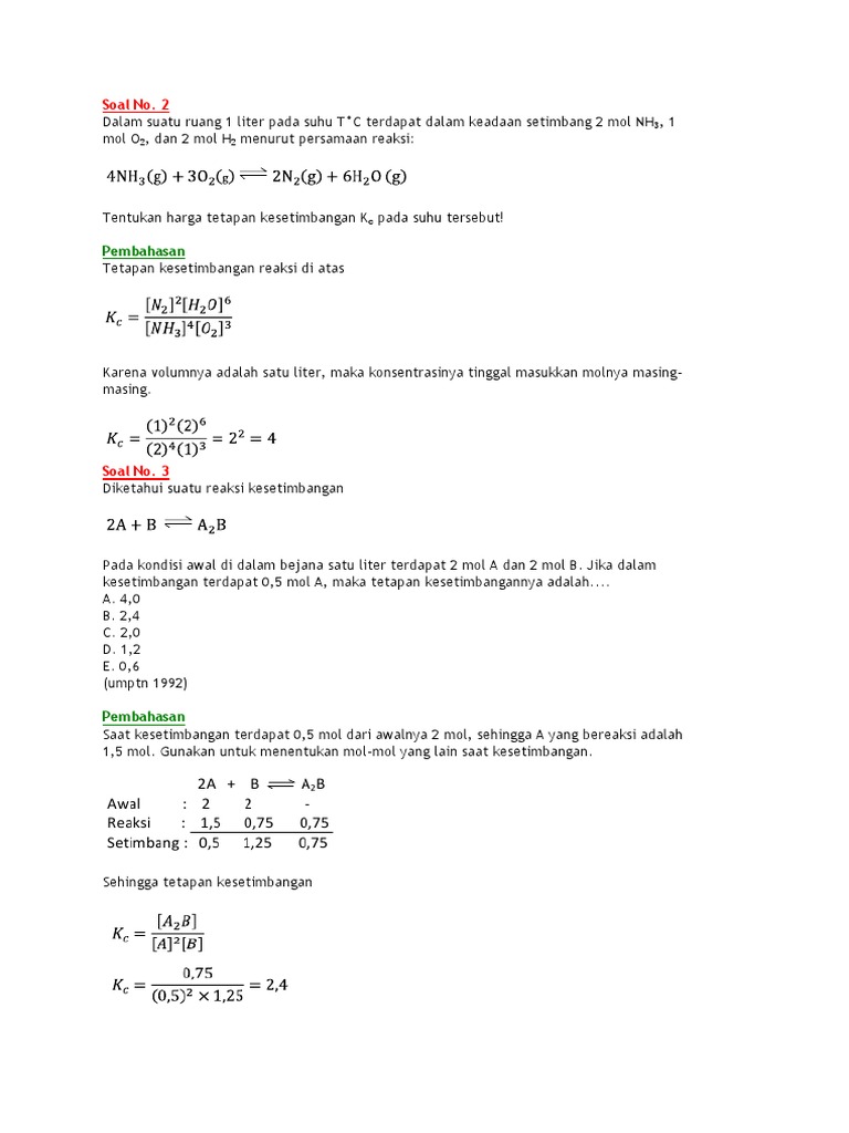 Contoh Soal Kesetimbangan Kimia Dan Jawabannya - Contoh Soal Terbaru
