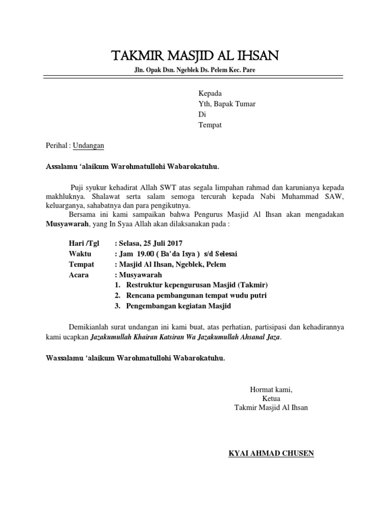 Contoh Surat Undangan Majelis Taklim Surat 8 - Cute766