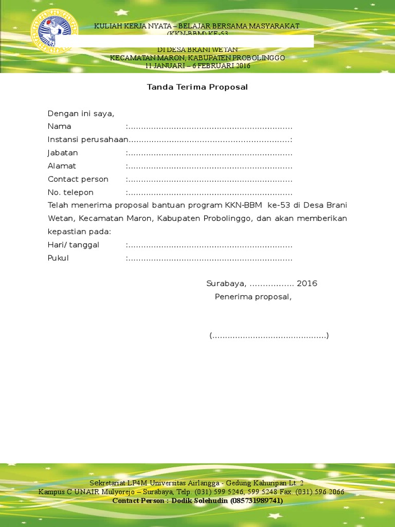 Contoh Tanda Terima Proposal