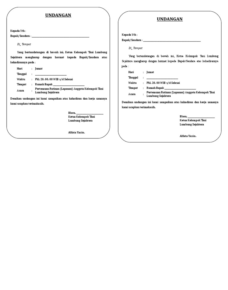 Contoh Undangan Kelompok Tani