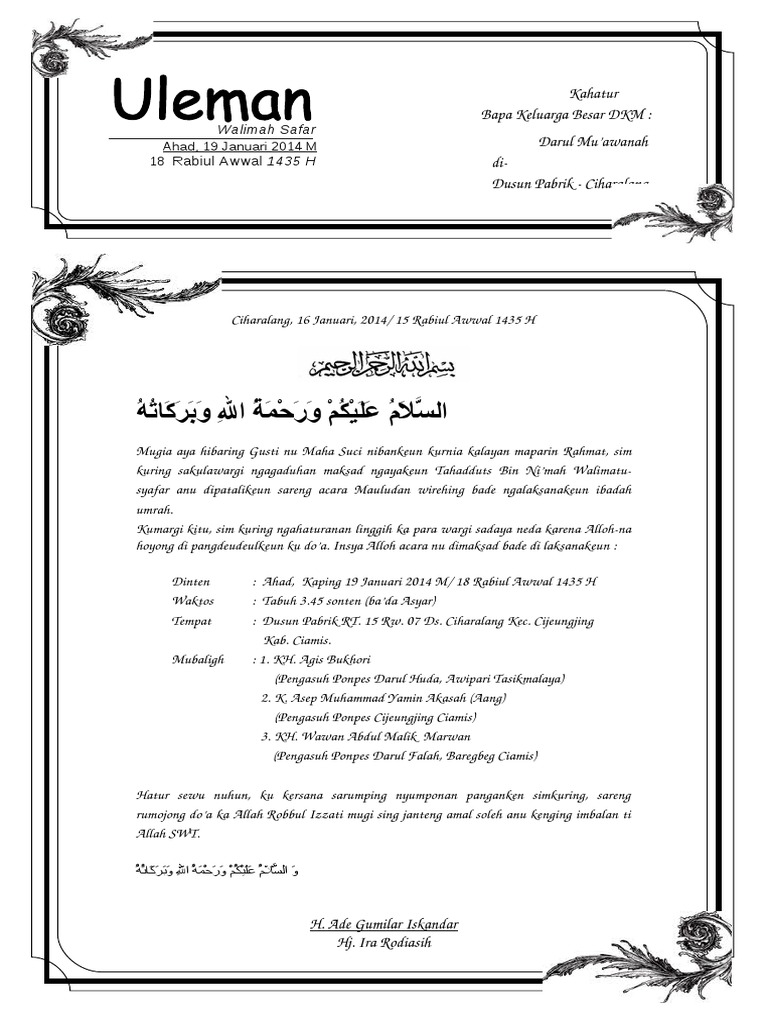 Contoh Surat Undangan Walimatussafar Bahasa Sunda - Surat 28
