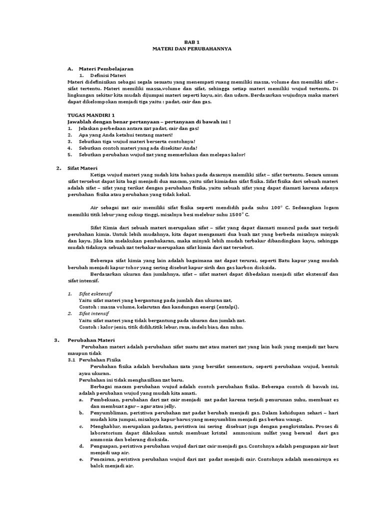 Bab 1 Materi Dan Perubahannya: 1. Sifat esktensif