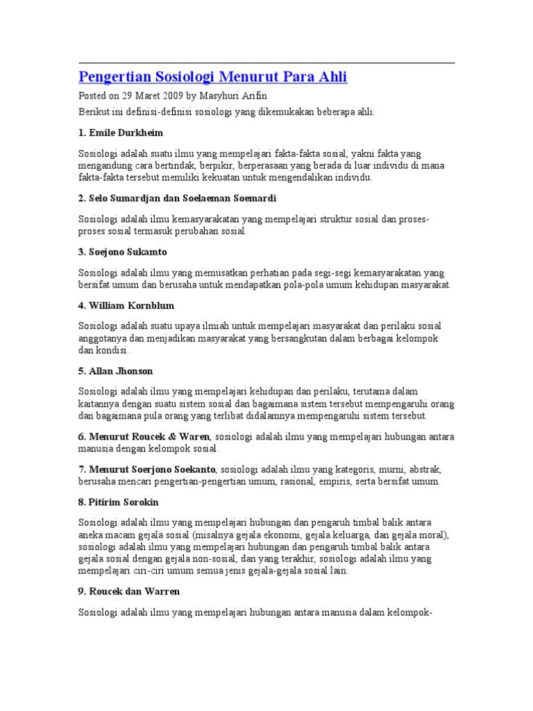 37 Pengertian Sosiologi Menurut Para Ahli Lengkap …
