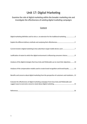 Unit 17 Digital Marketing, Assignment 1 Learning Aim A & B Examine the role mix & Effectiveness | Teaching Resources