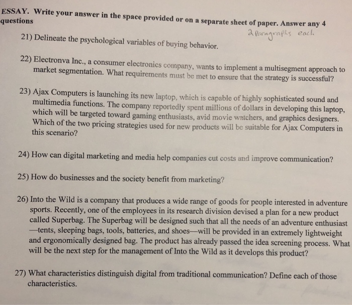 Solved: ESSAY. Write Your Answer In The Space Provided Or … | Chegg.com