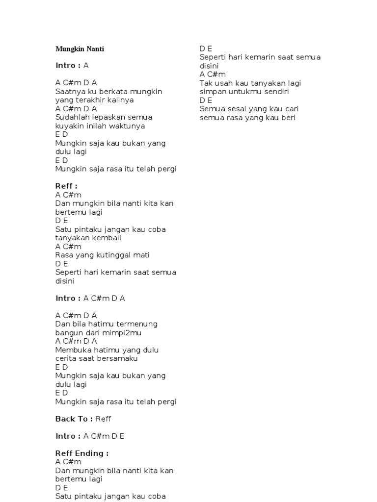 Chord Gitar Lagu Mungkin - Chord Gitar Lagu Lagu Kenangan
