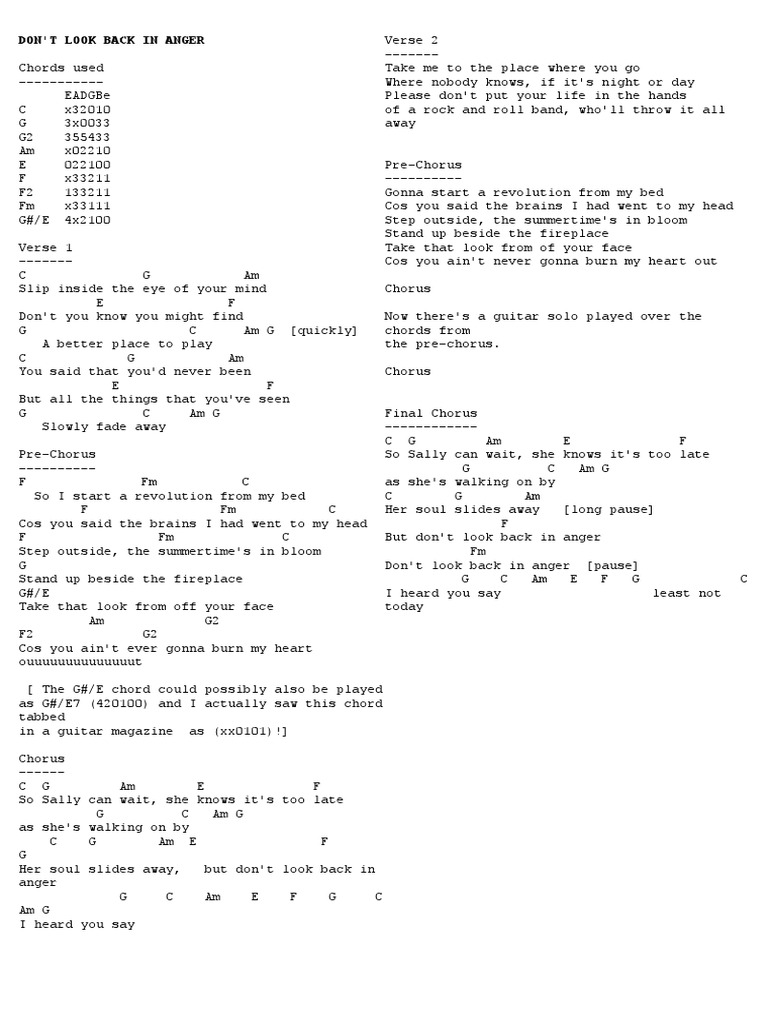Chord Kunci Gitar Oasis - Dont Look Back In Anger, So Sally Can …