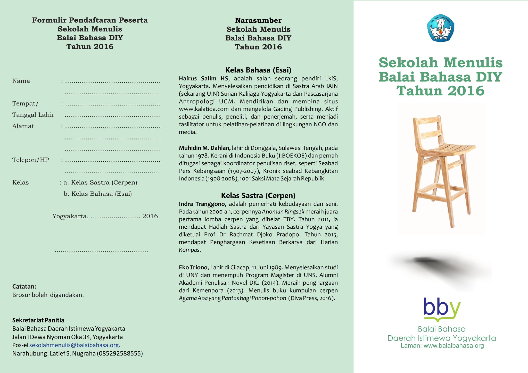 Balai Bahasa Provinsi DIY a Twitter: “DIBUKA SEKOLAH MENULIS, KELAS ESAI DAN CERPEN. SETIAP KELAS 25 SISWA. KHUSUS PELAJAR DAN MAHASISWA DI DIY. PENDAFTARAN 28/09 - 4/10. GRATIS.… https://t.co/HwPmeMvZiv”