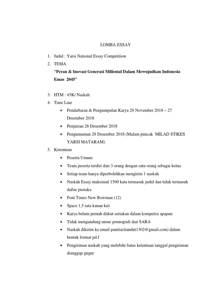 PANDUAN LOMBA ESAI NASIONAL KATEGORI MAHASISWA - PDF Free Download