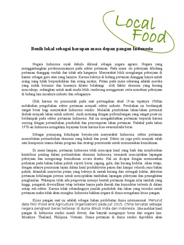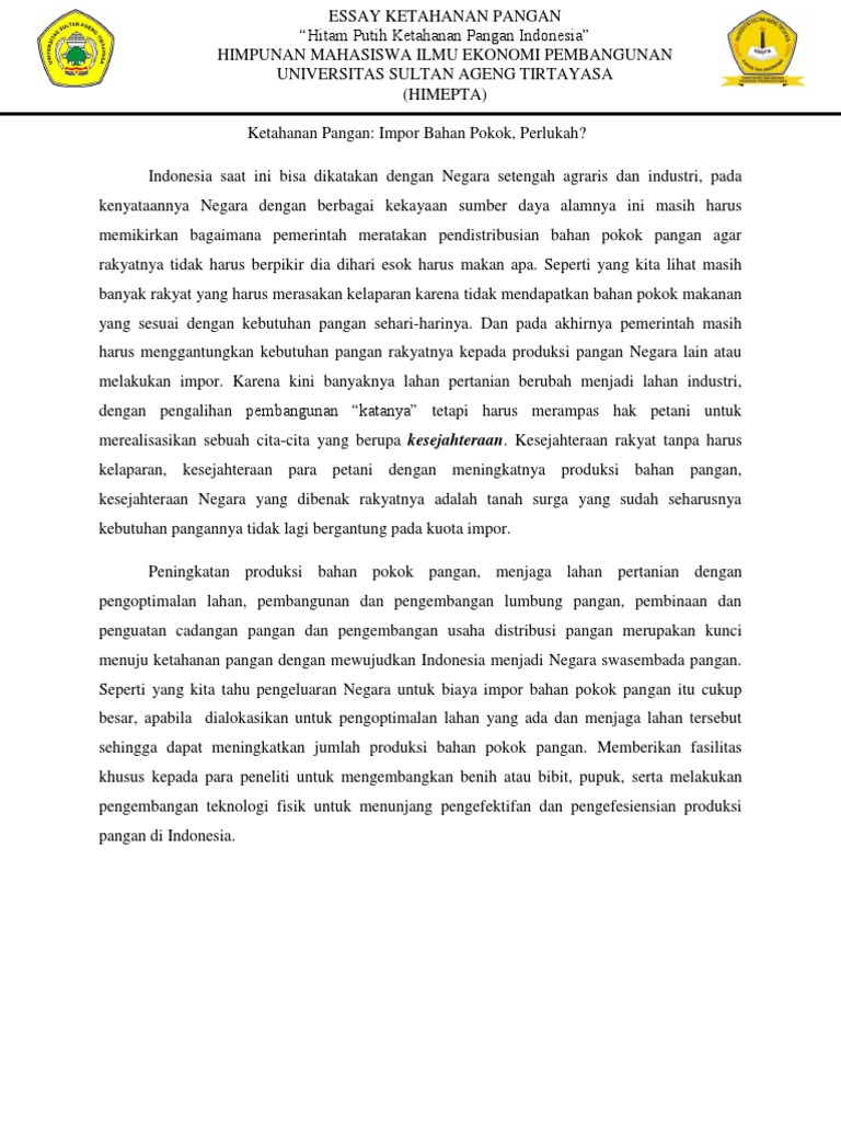Contoh Essay Ketahanan Pangan - Contoh 193