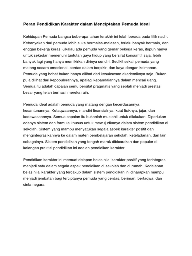 Essay pendidikan yang berkarakter